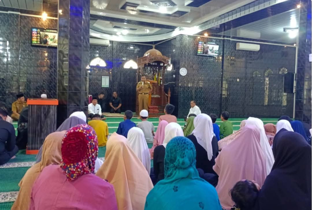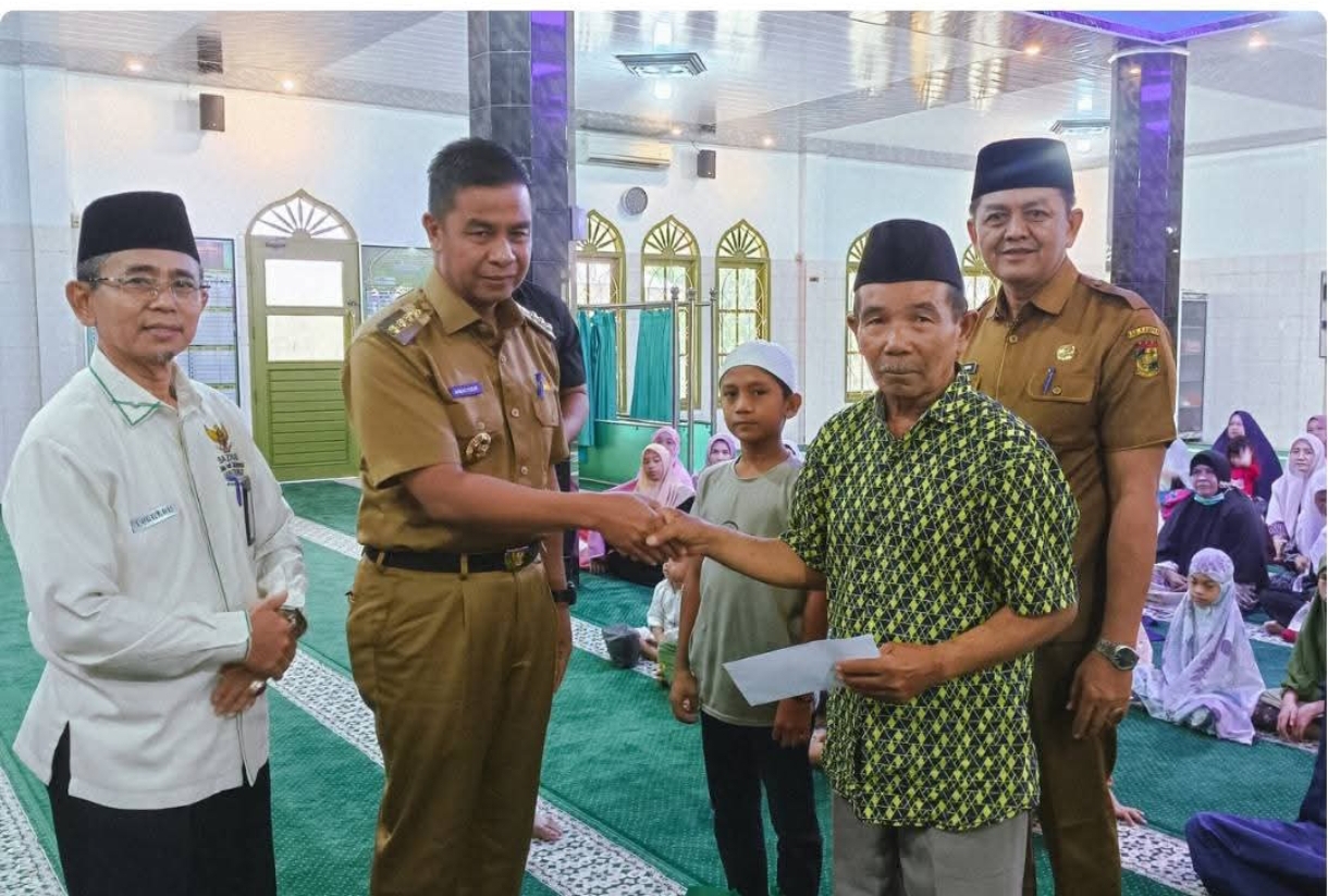 Bangkinang, Bertuahnews.com – Bupati Kampar Ahmad Yuzar, S. Sos, MT menyerahkan santunan kepada anak yatim dan kaum dhuafa yang berada di lingkungan pendopo Komplek Rumah Dinas Bupati Kampar. Acara ini dilaksanakan di Masjid Ar-Rahman. Senin (24/3/25)