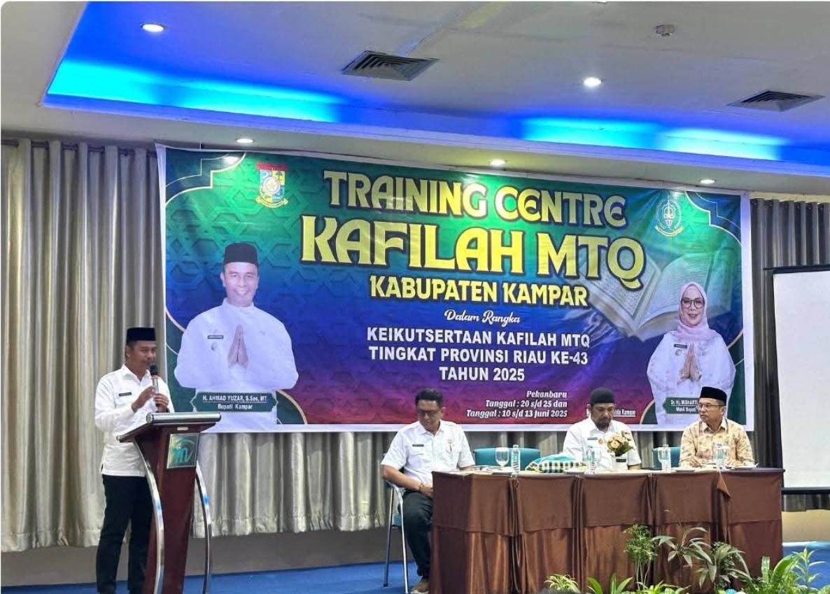 Pekanbaru, Bertuahnews.com- Bupati Kampar Ahmad Yuzar, S.Sos, ST didampingi Plt. Asisten I Setda Kampar Tengku Said Hidayat, S.STP.M.Ip dan Plt Kabag Kesra Setda Kampar Zamhur, S.Ag.M.Si membuka secara resmi Training Centre (TC) Kafilah Kabupaten Kampar yang dilaksanakan di Hotel Mona Pekanbaru. Rabu (21/5/2025).