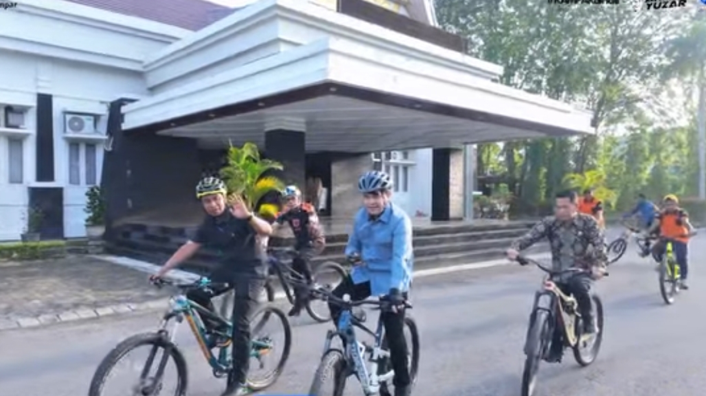 Kampar, Bertuahnews.com – Bupati Kampar Ahmad Yuzar bersama jajaran kepala Organisasi Perangkat Daerah (OPD) melaksanakan Gerakan Jumat Bersepeda dan Sepeda Motor ke Kantor sebagai upaya mendorong efisiensi energi dan perubahan pola kerja di lingkungan pemerintahan, Jumat pagi 10/4/2026.