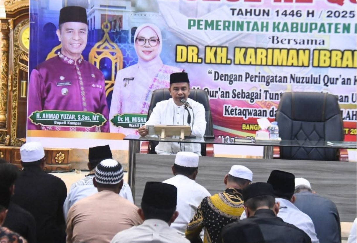 Bangkinang, Bertuahnews.com – Bupati Kampar Ahmad Yuzar, S,Sos,MT memperingati Nuzul Qur’an atau turunnya Al Qur’an. Peringatan Nuzul Qur’an itu bertepatan dengan malam 17 Ramadhan 1446 H/2025 Masehi.