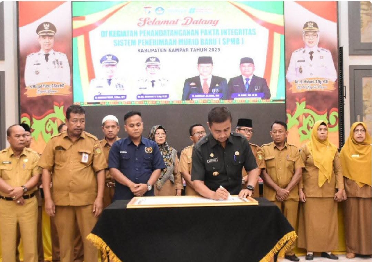 Penandatanganan pakta integritas ini menjadi langkah konkret Pemerintah Kabupaten Kampar dalam memperkuat tata kelola pendidikan, khususnya dalam proses seleksi dan penerimaan siswa baru SD dan SMP di wilayah Kabupaten Kampar.