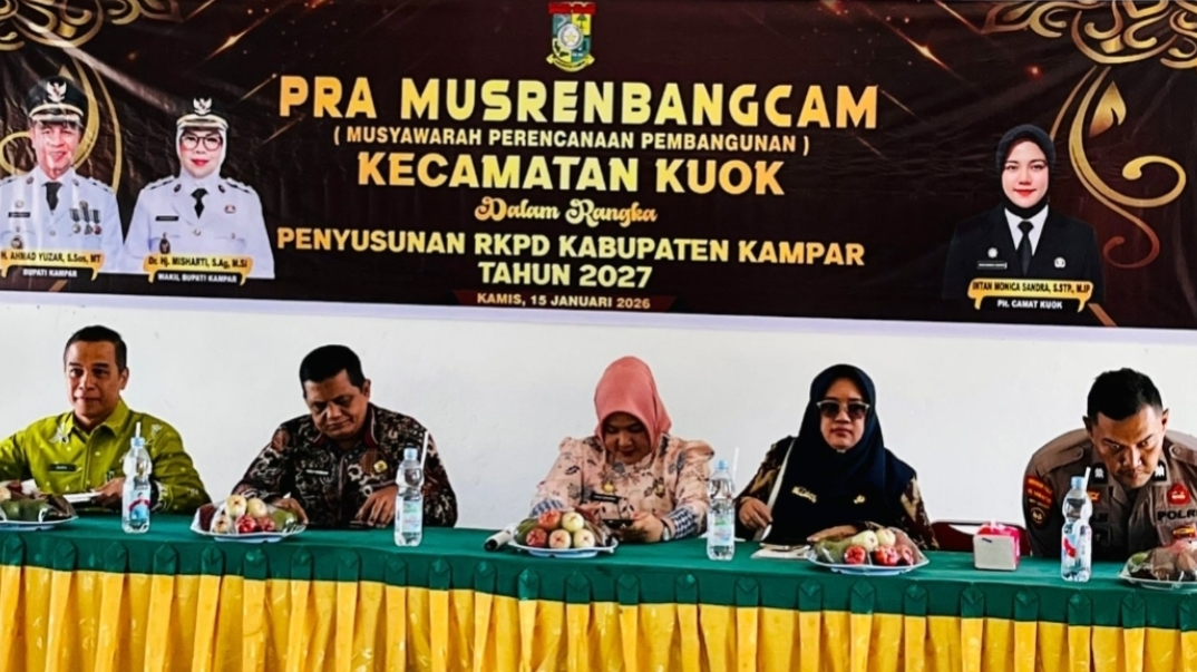 Kuok, Bertuahnews.com – Dinas Pendidikan, Kepemudaan dan Olahraga (Disdikpora) Kabupaten Kampar ambil bagian dalam kegiatan Pra Musyawarah Perencanaan Pembangunan Kecamatan (Pra Musrenbangcam) Kuok sebagai tahapan awal penyusunan Rencana Kerja Pemerintah Daerah (RKPD) Kabupaten Kampar Tahun 2027. Kegiatan tersebut digelar di Aula Kantor Camat Kuok, Kamis (15/1/2026).