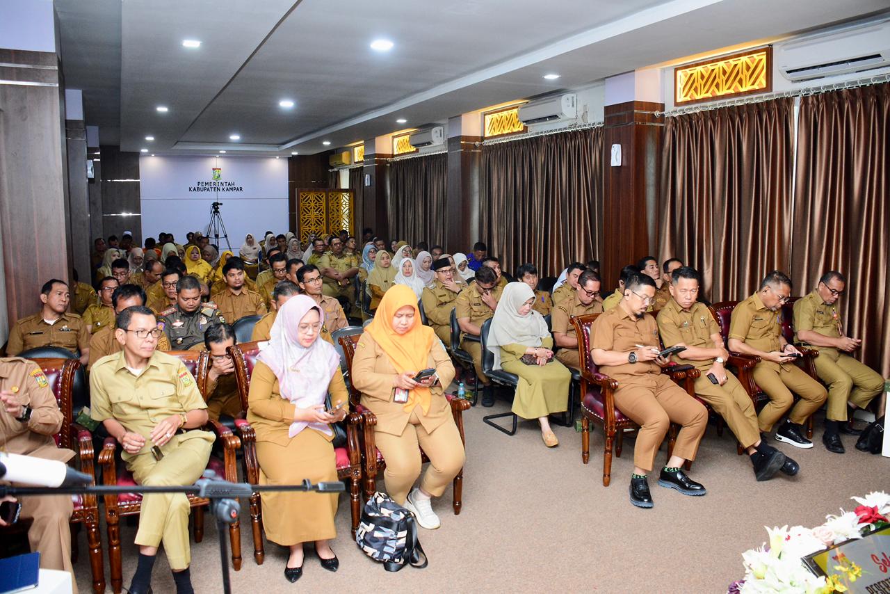 Kegiatan ini diikuti OPD, camat, kepala sekolah, kepala desa, dan kepala puskesmas se-Kampar. Materi meliputi kebijakan inovasi, penguatan kapasitas, serta keberlanjutan program.