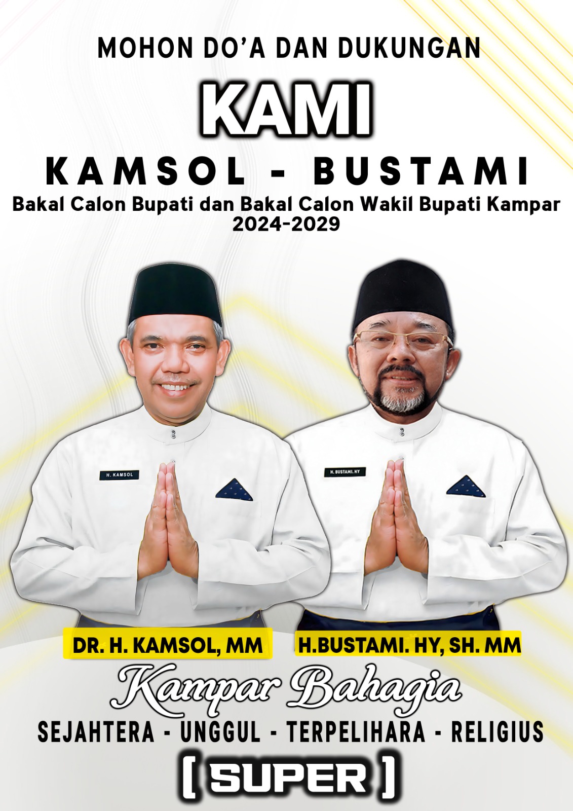 Nama Kamsol dan Bustami sudah dikenal dengan sebutan “KAMI” (Kamsol-Bustami) dan dengan tagline “Kampar Bahagia” yang mengusung nilai-nilai “Sejahtera”, unggul, terpelihara, dan religius. Dan salah satu inisiatif unggulan mereka ini yang telah mendapatkan banyak perhatian masyarakat adalah “Gerakan Peduli Tetangga”.