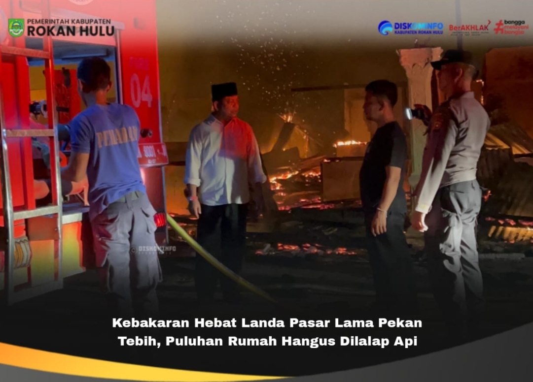Rokan Hulu, Bertuahnews.com – Kebakaran hebat melanda kawasan Pasar Lama Pekan Tebih, Kecamatan Kepenuhan Hulu, pada Rabu malam (11/2/2026) sekitar pukul 20.00 WIB. Kobaran api yang membumbung tinggi disertai asap hitam pekat sempat membuat warga panik dan berhamburan menyelamatkan diri serta barang berharga yang masih dapat dievakuasi.
