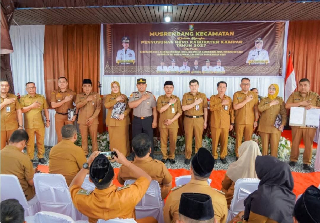 Kegiatan ini turut dihadiri Penjabat Sekretaris Daerah Kabupaten Kampar, para kepala organisasi perangkat daerah (OPD), para camat, serta unsur terkait lainnya yang terlibat dalam proses perencanaan pembangunan daerah.