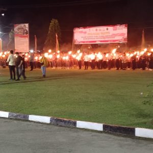 Kapolres Kampar Pimpin Upacara Taptu dan Wabup Lepas Pawai Obor di Mapolres