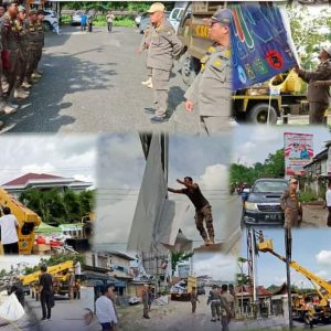 Baliho, Banner dan Reklame Liar Ditertibkan Satpol PP Kampar di Berbagai Lokasi