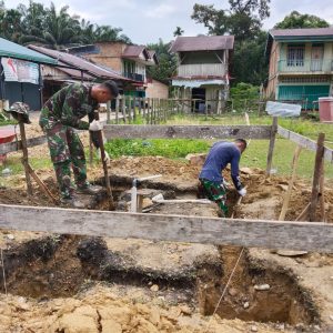 Guna Melengkapi Sarana Air Bersih, Satgas TMMD 121 Kodim 0313/KPR Bangun Tandon Air di Desa Gema