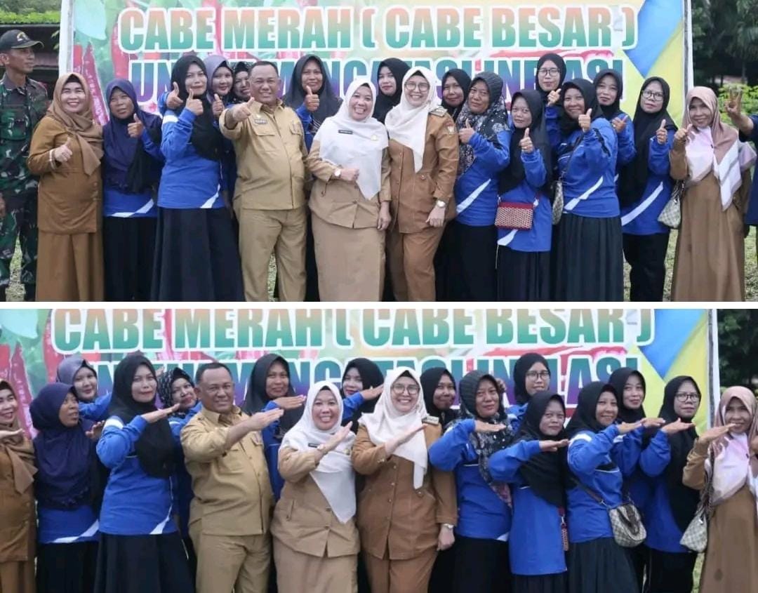 Bangkinang, BertuahNews – Penjabat Bupati Kampar yang diwakili Asisten Bidang Pamerintah, Hukum dan Kesra Setda Kampar Ahmad Yuzar, So,s, MT melakukan tanam cabe besar untuk mengatasi inflasi bersama kelompok Tani Mulya Berkah desa Ridan Kecamatan Bangkinang Kota. (19/2)