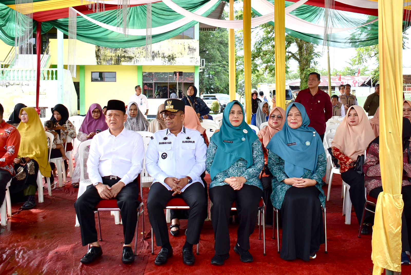Bertempat di halaman Posyandu Melati Kelurahan Langgini Kecamatan Bangkinang Kota, rombongan untuk pertama kali tiba dan tampak disambut juga oleh Pj. Sekda Kampar Ramla, Kepala Puskesmas Bangkinang Kota dr. Yudi, para pengurus TP PKK Kabupaten Kampar, Para Tenaga Medis, Organisasi Mitra Paud, Kader Posyandu dan oleh para perwakilan dari OPD di lingkungan Pemerintah Kabupaten Kampar serta para pemuka masyarakat setempat.
