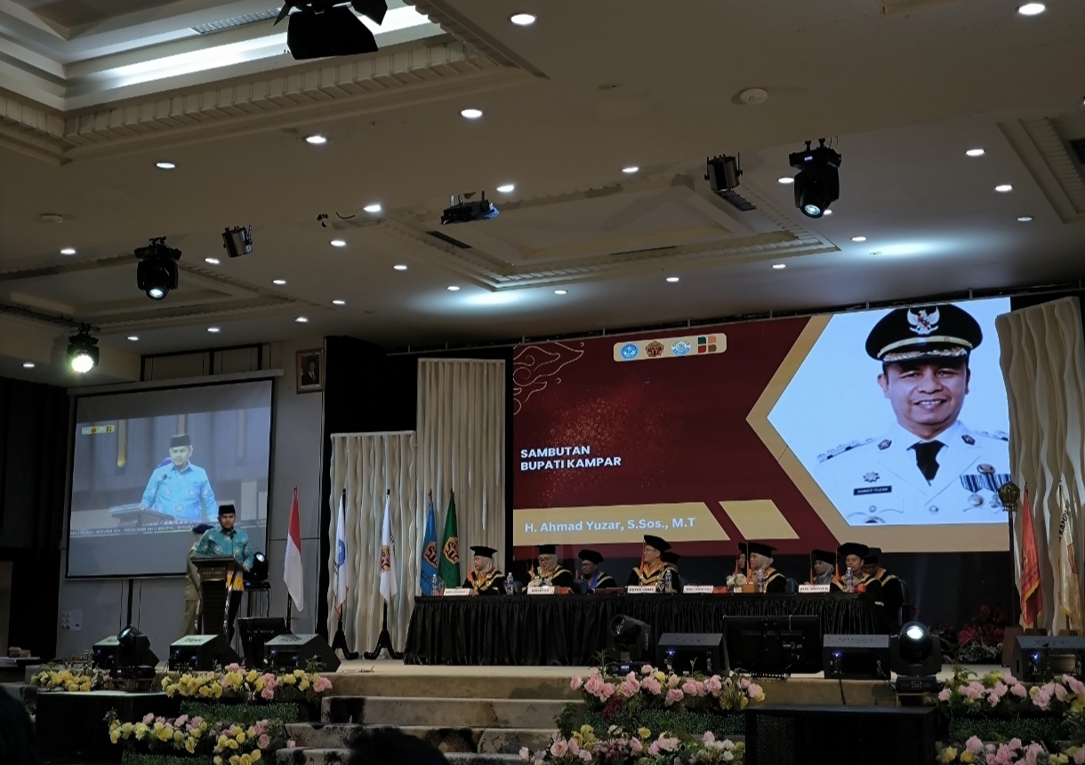 Sementara itu, Bupati Kampar H. Ahmad Yuzar, S.Sos., M.T., yang diwakili Staf Ahli Bupati Bidang SDM, Riadel Fitri, menyampaikan apresiasi atas kiprah Politeknik Kampar dalam menyiapkan sumber daya manusia unggul di sektor industri dan perkebunan.