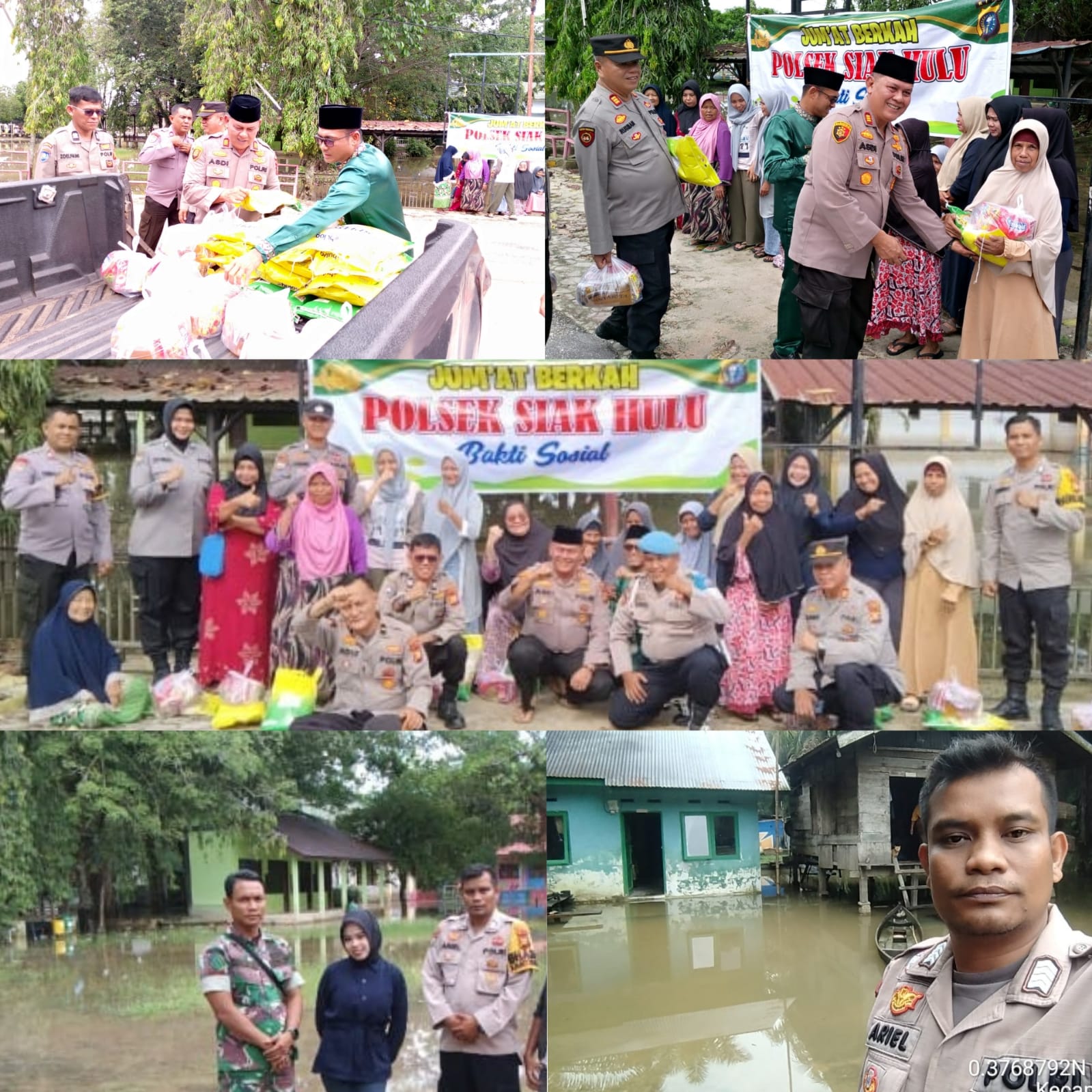 Sebelum menyalurkan bantuan, Polsek Siak Hulu bersama Koramil 06/SH, pemerintahan desa dan Puskesmas setempat, melakukan patroli dan peninjauan ke beberapa wilayah yang rawan terdampak banjir. Mereka memastikan keselamatan jiwa dan materil warga yang terdampak.