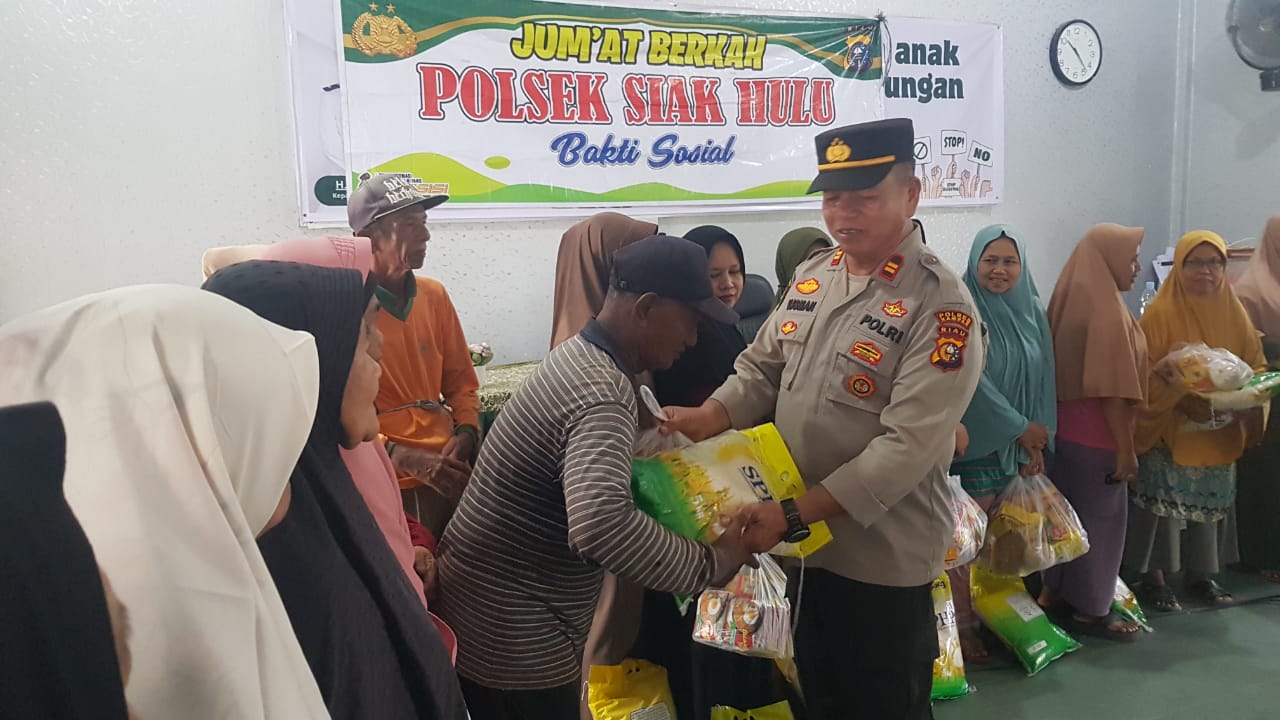 Polsek Siak Hulu Terus Berbagi Dalam Jum’at Berkah, Dan Mengajak Masyarakat Untuk Jaga Kamtibmas Pasca Pilkada