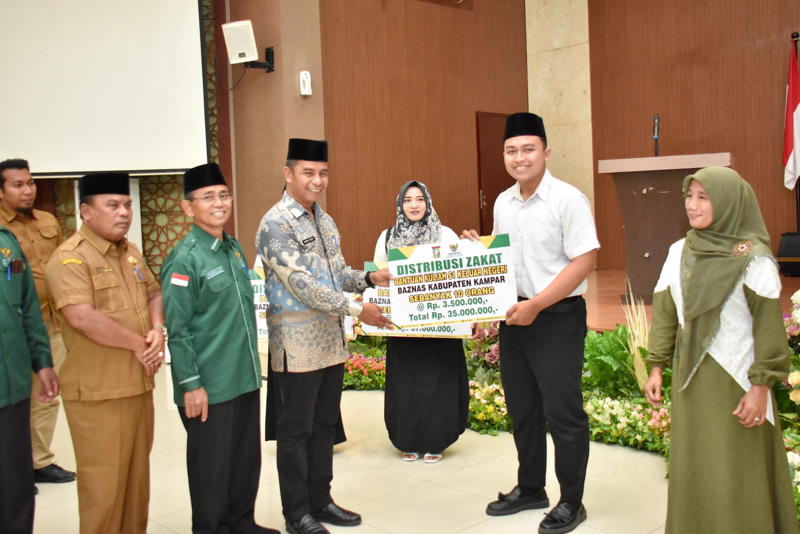 “Hari ini, kita serahkan bantuan bea siswa sebanyak 108 orang mustahik untuk bantuan S1 dengan Total Rp. 272. 500.000. Untuk bantuan kuliah S2 sebanyak 29 orang mustahik dengan total Rp. 87.000.000 dan pendidikan S1 luar negeri sebanyak 10 orang dengan total Rp. 35.000.000,- serta bantuan konsumtif sebanyak 1000 orang di wilayah Kabupaten Kampar dengan total Rp. 300.000/orang dalam berbentuk sembako,” tuturnya.