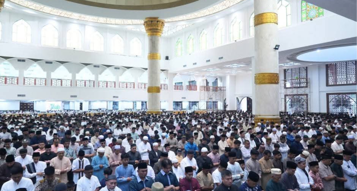 Ribuan Jamaah Padati Masjid Al-Ikhsan dalam Shalat Idulfitri Bersama Pemkab Kampar