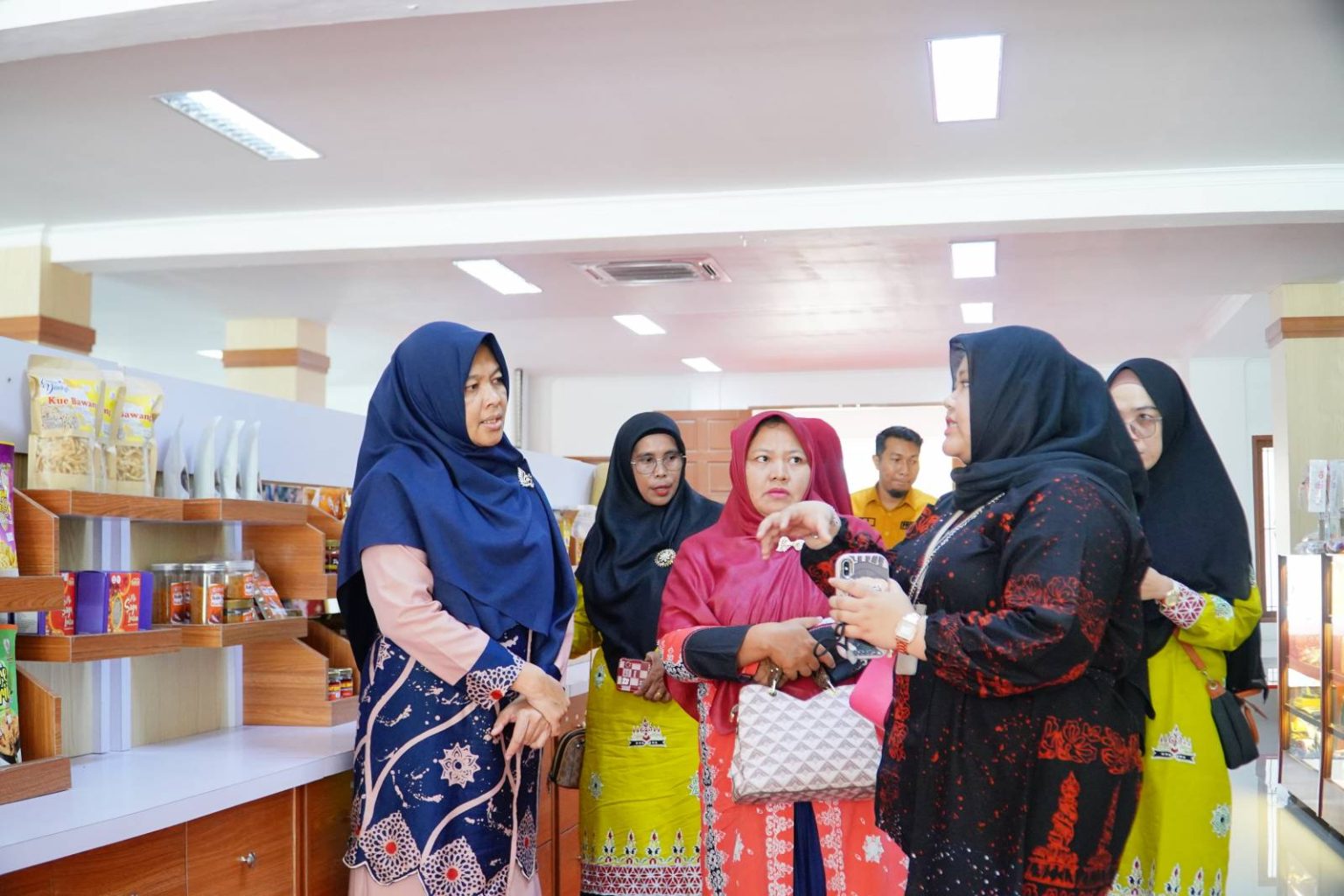 Kedatangan Ricana yang juga didampingi oleh Agusni Mariani selaku Kepala Bidang Pembinaan dan Pengembangan IKM Dinas Perindustrian dan Ketenagakerjaan Kabupaten Kampar beserta jajaran tampak disambut hangat oleh Ketua Pengelolah Galeri Dekranasda Kota Pekanbaru dan anggota.