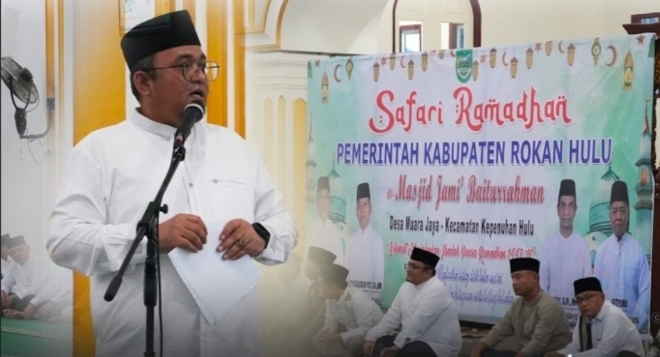 ROKAN HULU, Bertuahnews.com – Pemerintah Kabupaten Rokan Hulu (Rohul) melaksanakan kegiatan Safari Ramadan 1447 Hijriah ke-5 di Masjid Baiturrahman, Desa Muara Jaya, Kecamatan Kepenuhan Hulu, Rabu (4/3/2026). Kegiatan ini menjadi momen silaturahmi antara pemerintah daerah dengan masyarakat sekaligus penyerahan sejumlah bantuan sosial.