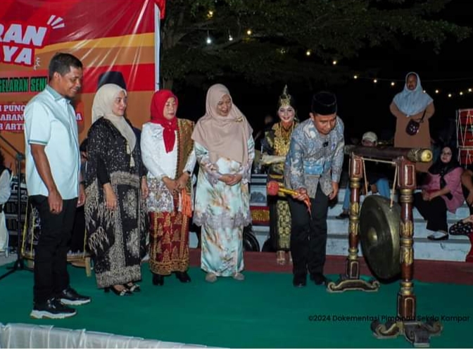 Kegiatan malam pergelaran seni dan budaya ini ditandai dengan pemukulan gong oleh P.j Sekda Kampar Ahmad Yuzar, bersama Pj. Ketua TP-PKK Kampar, Ny.Ricana Djayanti Hambali dan disaksikan oleh Anggota DPRD Kampar Zumrotun, Plt. Ketua DWP UP Kampar Tengku Nurheryani dan seluruh Kepala OPD serta melibatkan seluruh majelis adat dan paguyuban yang ada di Kabupaten Kampar